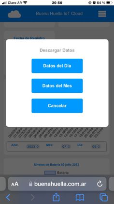 - Si hago click en la fecha puedo descargar los datos del mes del sensor