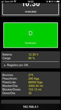 Sistema IOT de dosificacion liquida de antiempaste, taninos, minerales y suplementos para los bebederos de ganado, programado desde el celular, con panel solar y baterias de litio